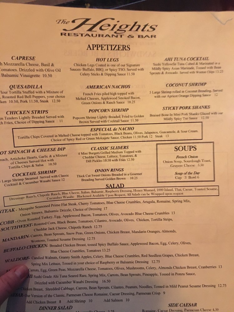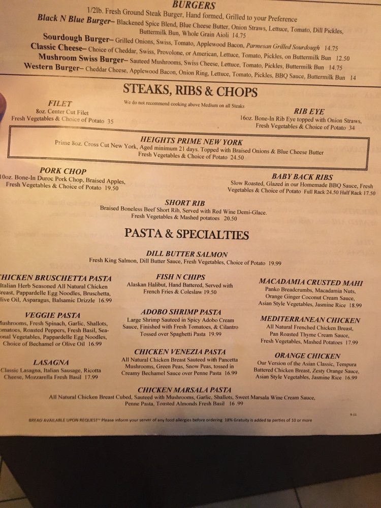 Whether you're visiting for lunch or dinner, The Heights promises great food and memorable moments. Don’t miss their happy hour specials and the chance to unwind with friends over drinks!